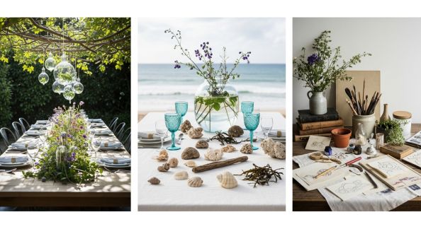 - Le mix saisonnier : Inspire-vous des couleurs de la saison (printemps floral, automne cuivré) et adaptez votre palette à ce qui est accessible sur le marché et dans la nature alentour. Bonus : coûts maîtrisés, écho à la déco du lieu.