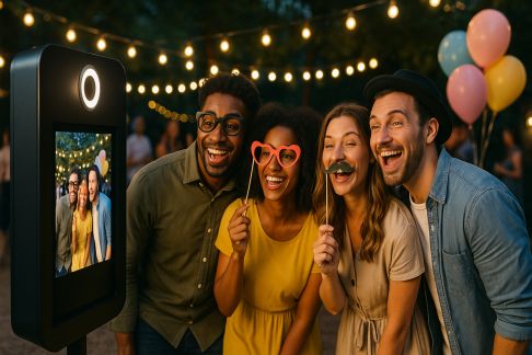 - Décoration du jour J : Pancartes, centres de table, livre d’or avec clichés imprimés, badges invités, projection photo ou vidéo pendant le cocktail.